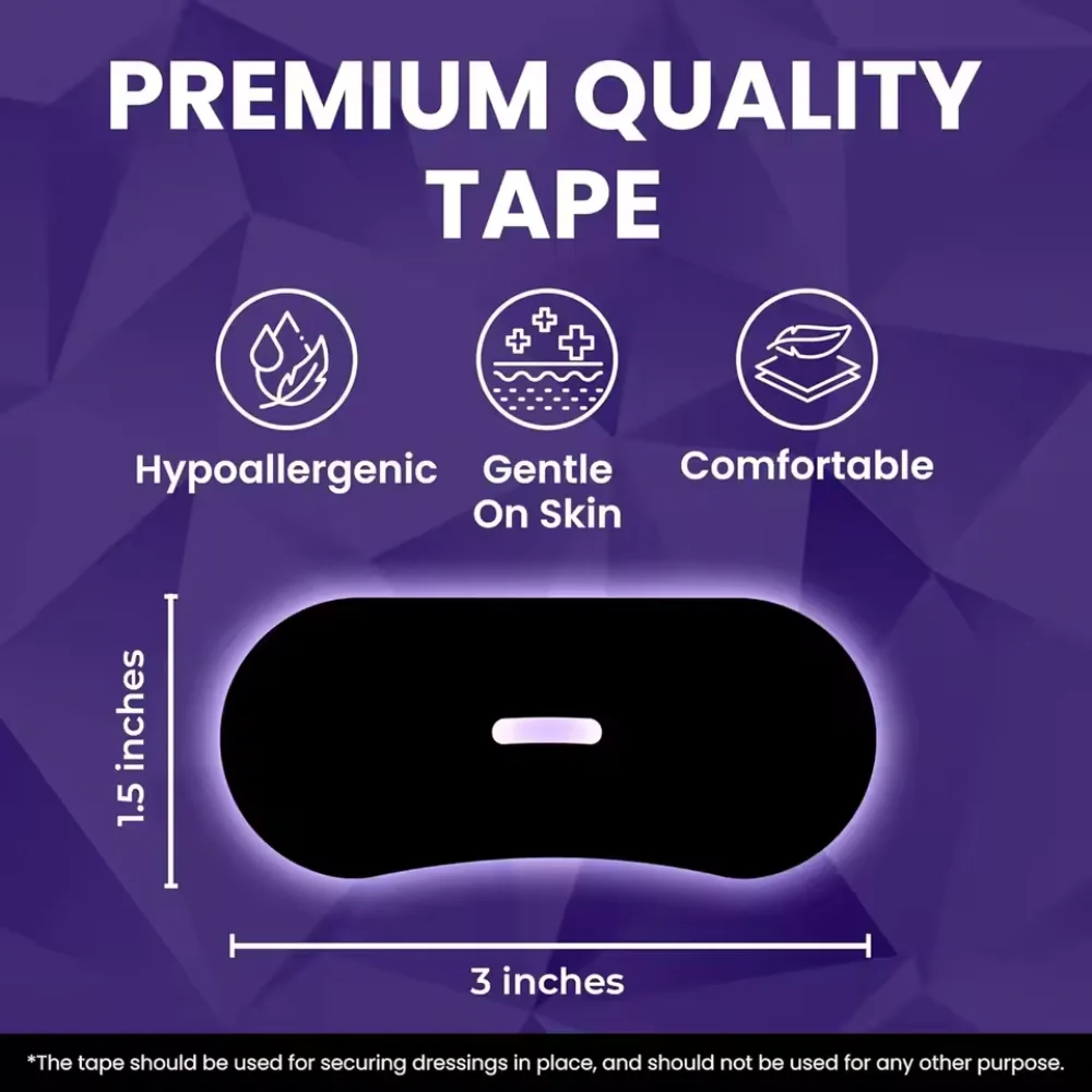 Made from gentle materials like cotton and spandex, the tape sticks easily to your skin without pulling or causing irritation. Its smart oval shape has a central breathing slit, allowing airflow while keeping it safe and comfortable for first-time users.