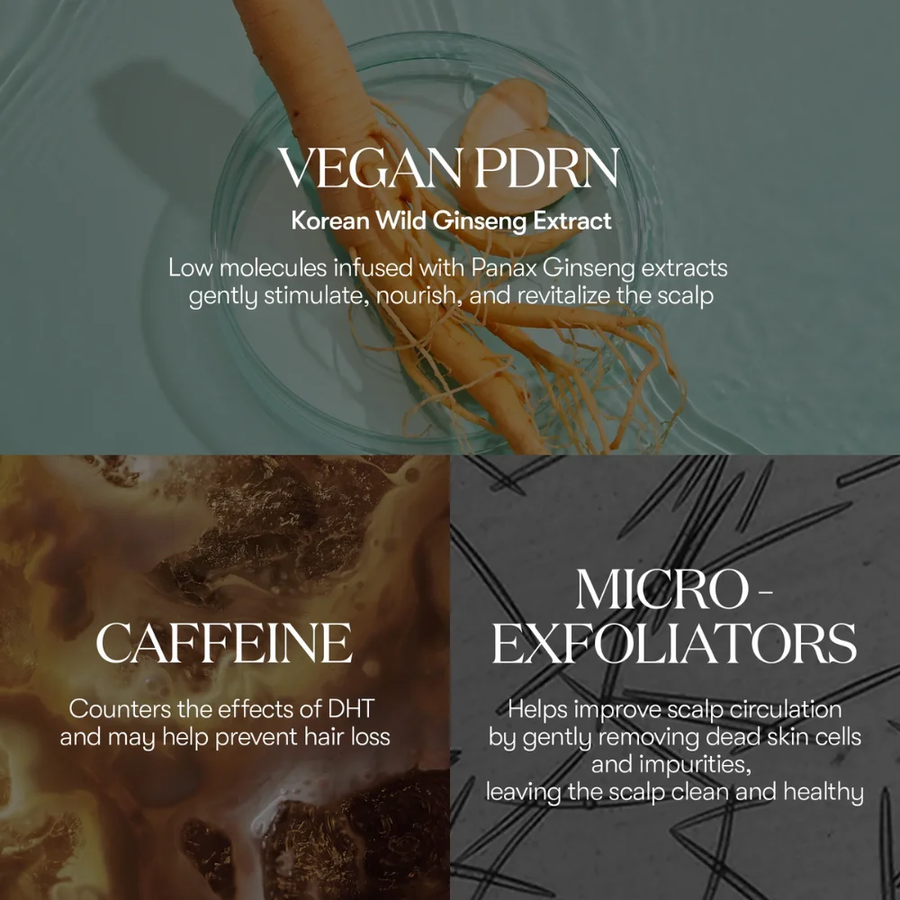 - Plant-Based PDRN: Supports tissue repair and helps renew the scalp at a cellular level.